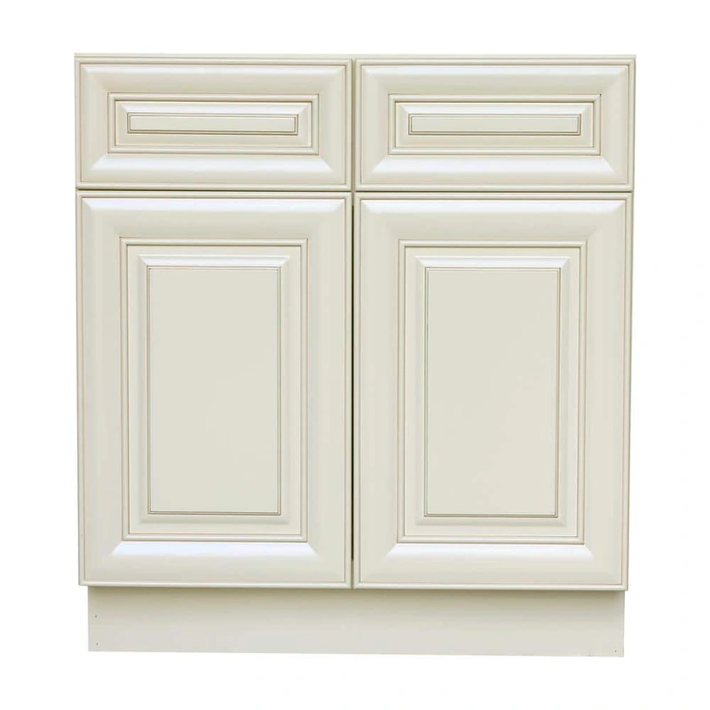 Antique White RTA Sink Base Cabinet, 36 in. The Plywell Ready-to-Assemble Sink Base Cabinet in Antique White elevates any kitchen with its elegant design. Crafted from high-quality plywood and solid wood, this cabinet features soft-close doors and a classi