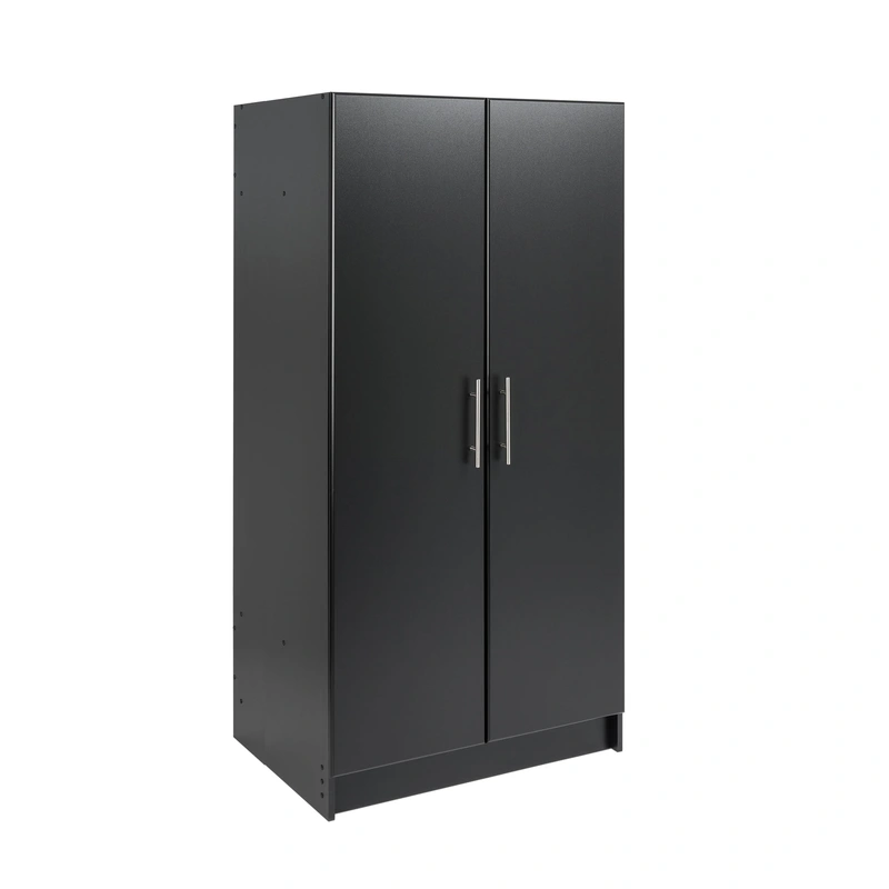 Prepac Elite 32" Utility Storage Cabinet Optimize your space effortlessly with the Prepac Elite 32" Storage Cabinet. Crafted from durable, non-toxic laminated composite wood, this sturdy freestanding unit offers multifunctional storage with its practical d