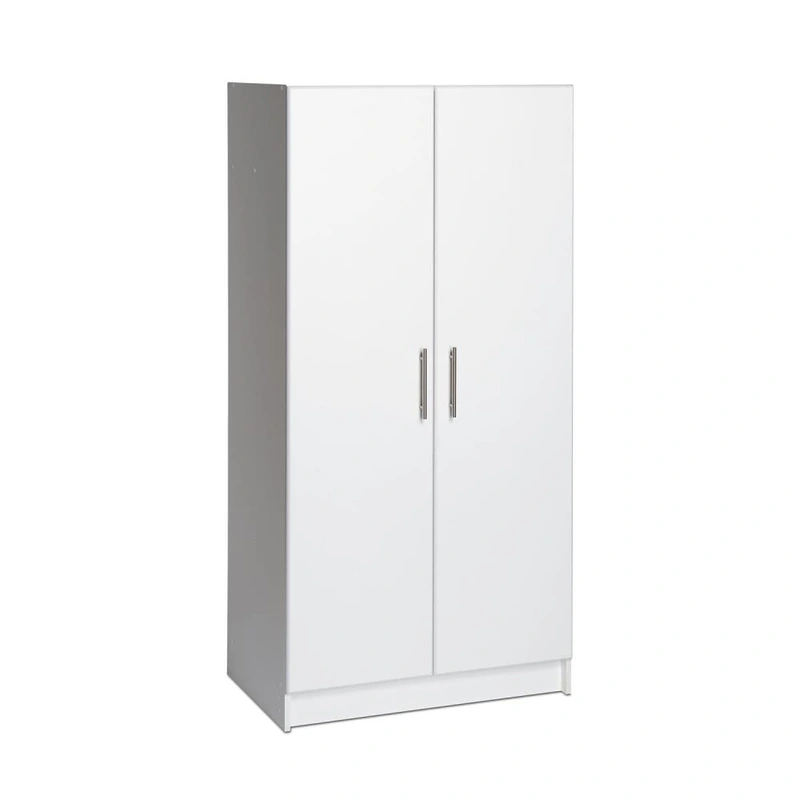 White Freestanding Utility Storage Cabinet The Prepac Elite 32-in W x 65-in H Utility Storage Cabinet offers unparalleled storage and organization for any space. With a durable white laminate finish and sleek satin nickel handles, this versatile, freestand