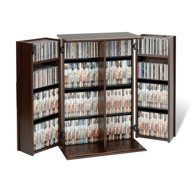 Espresso Media Cabinet with Locking Doors Elevate your media storage with the Prepac Espresso Transitional Composite Media Cabinet, featuring a sleek design and durable construction. This cabinet offers customizable storage for your CDs, DVDs, and Blu-ray