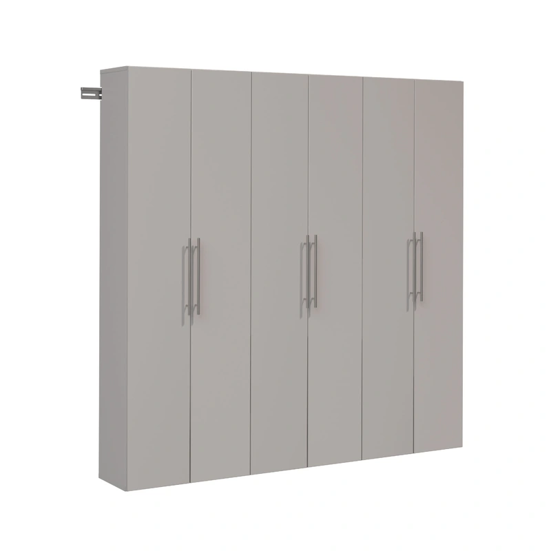 Prepac HangUps 72-in Wall-Mount Storage Cabinet The Prepac HangUps Wall-Mount Utility Storage Cabinet is perfect for maximizing your storage space in garages, laundry rooms, or offices. Its sleek light gray design features a durable wood composite construc