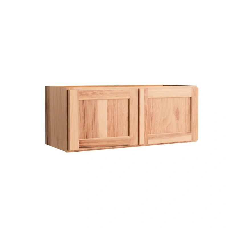 Branson Hickory Shaker Wall Cabinet Enhance your kitchen with the Branson 30-inch Hickory Wall Cabinet, providing rustic charm and high functionality. Its recessed panel shaker door style and full overlay design offer a sleek, modern look coupled with the