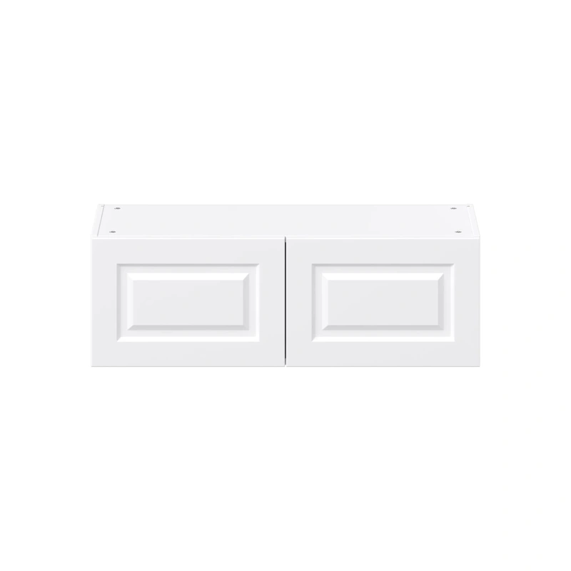 Cheyenne White 36-in Wall Cabinet Transform your space with the Cheyenne White 36-in Wall Cabinet, featuring a classic raised panel design and a sleek matte finish. This wall cabinet, designed for optimal storage, is scratch and moisture resistant, combini