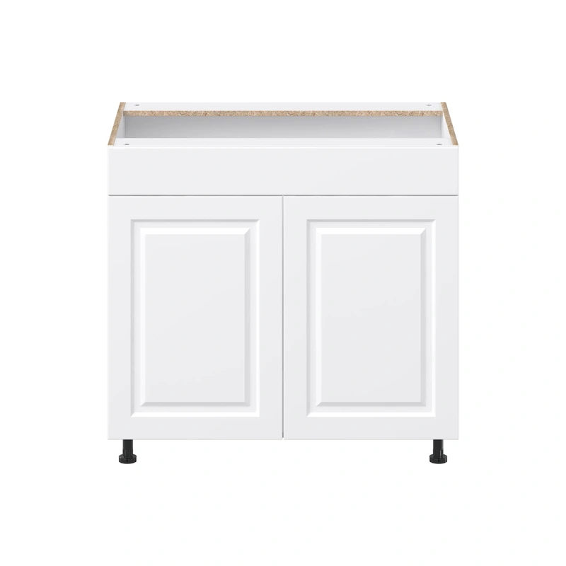 Project Source Cheyenne White 36-in W x 34.5-in H x 24.56-in D White Sink Base Ready To Assemble Cabinet (Raised Panel Square Style)