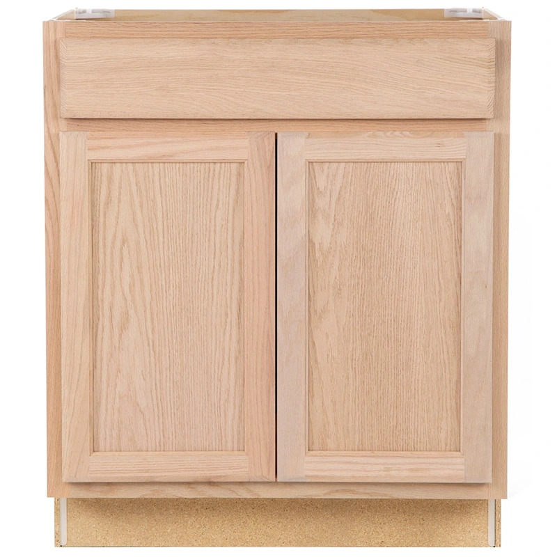 Oak Brook 30-in Unfinished Oak Sink Base Cabinet Transform your kitchen or bathroom with the Oak Brook 30-inch Unfinished Oak Sink Base Cabinet. This fully assembled, versatile cabinetry piece features a natural oak finish that can be painted, stained, or