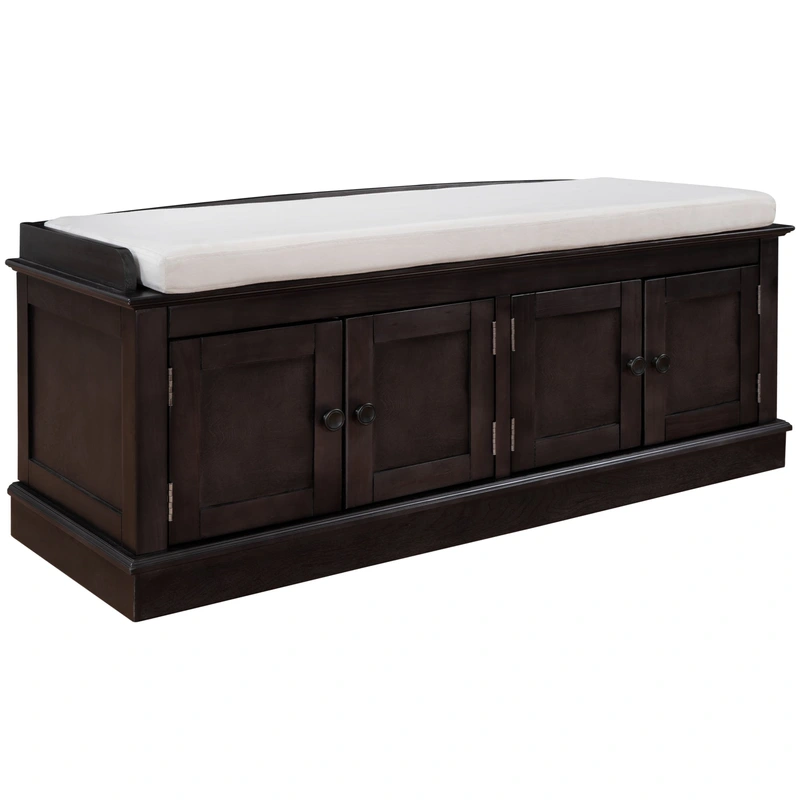 Qualler Espresso Storage Bench with Cushion The Qualler Modern Espresso Storage Bench combines style and function, offering a versatile solution for storage and seating in any home. Crafted from solid pinewood with a sleek espresso finish, this bench is pe