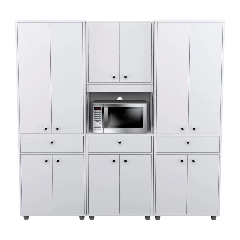 Inval Ready-to-Assemble White 3-Piece Kitchen Storage Cabinet Transform your kitchen with the Inval 3-Piece Kitchen Storage Cabinet, featuring a modern design and ample storage space. This ready-to-assemble set comes in a pristine white laminate, with adju