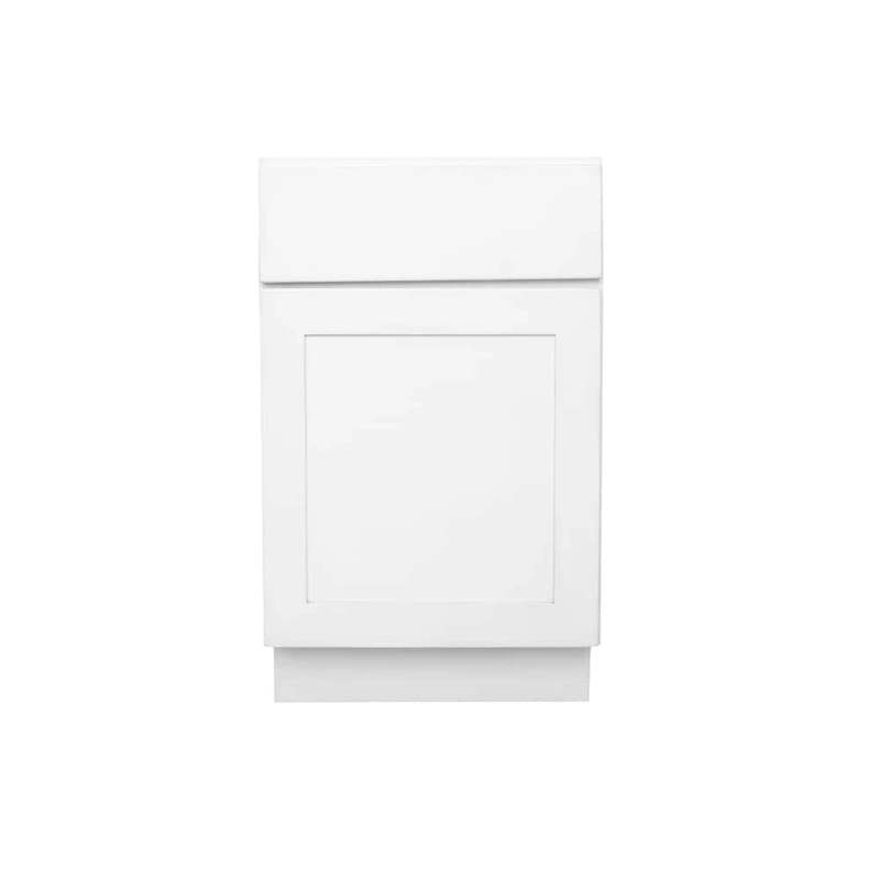 RELIABILT Fairplay 1-Drawer Shaker Style Cabinet The RELIABILT Fairplay 1-Drawer Base Cabinet combines minimalist shaker styling with robust plywood construction. Its matte white finish and smooth, painted exterior make it a versatile addition to any kitch