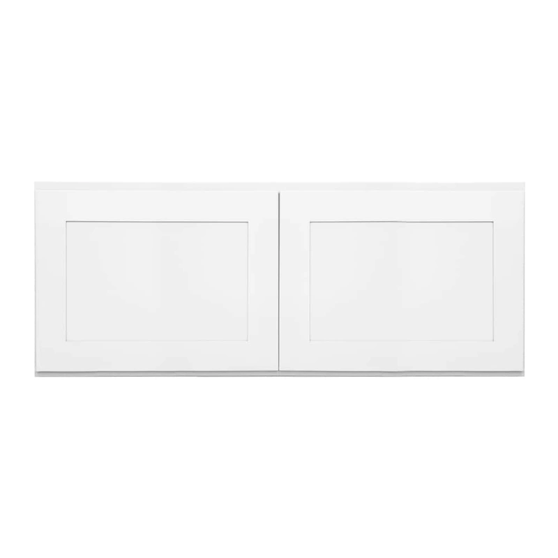 The RELIABILT Fairplay 30-inch White Wall Cabinet is a ready-to-assemble solution with a sleek recessed panel shaker door for a contemporary touch to any kitchen or bathroom. Its durable, all-plywood construction and soft-close hinges ensure longevity and quiet operation, making it an ideal choice for both professional installers and DIY enthusiasts.