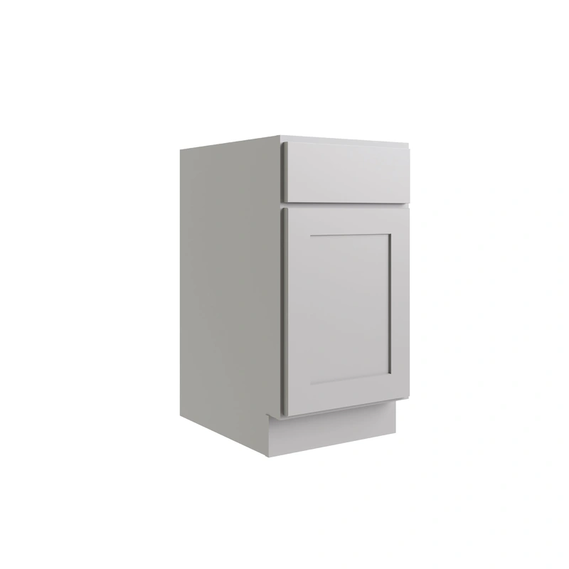 Grey Shaker Style Base Cabinet The RELIABILT Parkstone Grey Shaker Style Base Cabinet is an elegant solution for any kitchen or storage area. With a classic flat panel Shaker design, this 18-inch wide cabinet features a soft-close drawer and door for smoot