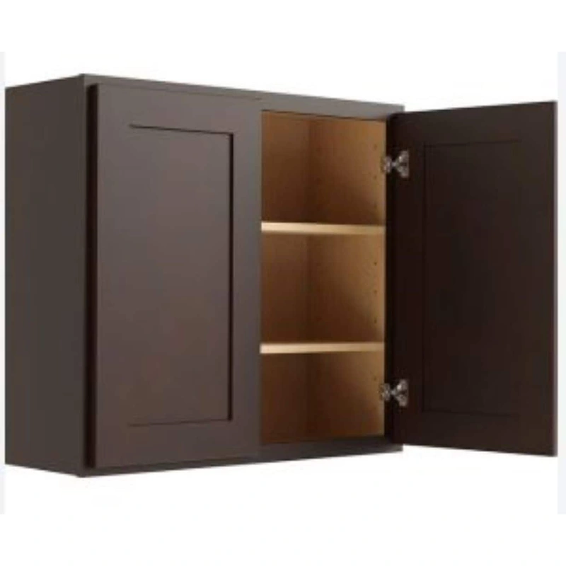 Espresso Shaker Wall Cabinet Enhance your home with the RELIABILT Parkstone Wall Cabinet, featuring a sleek Shaker style door finished in a rich Espresso stain. This pre-assembled cabinet combines plywood durability with a stylish design, perfect for kitch