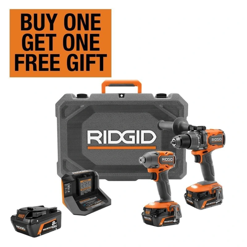 RIDGID 18V Brushless 2-Tool Combo Kit The RIDGID 18V Brushless 2-Tool Combo Kit delivers maximum performance with extended runtime, featuring a high torque hammer drill/driver and a 4-mode impact driver. This powerful duo is equipped with advanced anti-kic