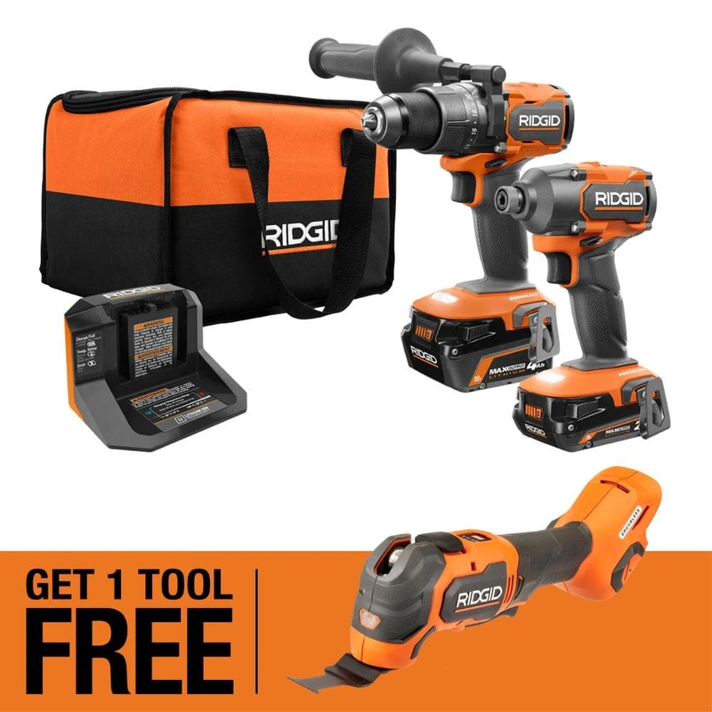 RIDGID 18V Brushless 2-Tool Combo Kit with Free Multi-Tool Experience industry-leading power and versatility with the RIDGID 18V Brushless 2-Tool Combo Kit. Each tool leverages brushless motor technology to deliver superior performance, extended run times,