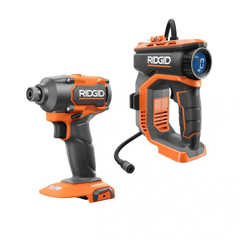 RIDGID 18V Impact Driver & Digital Inflator Combo Kit The RIDGID 18V Cordless 2-Tool Combo Kit is the perfect set for professionals and DIYers who demand performance and efficiency. Featuring a brushless 3-speed 1/4 in. impact driver for superior speed