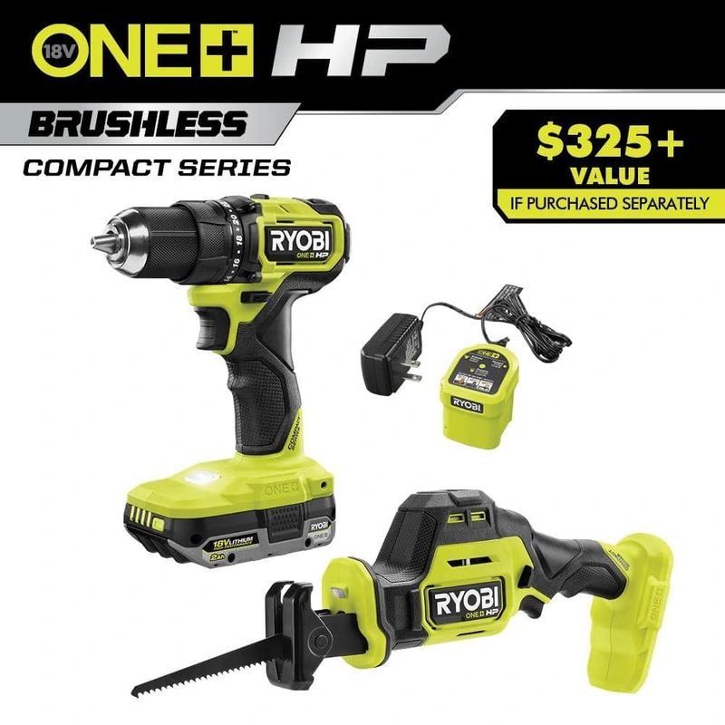 RYOBI ONE+ HP Compact 18V Brushless 2-Tool Combo Kit Experience high performance with the RYOBI ONE+ HP Compact 18V Brushless 2-Tool Combo Kit. Combining a powerful drill/driver with a compact one-handed reciprocating saw, it offers the reliability of brus