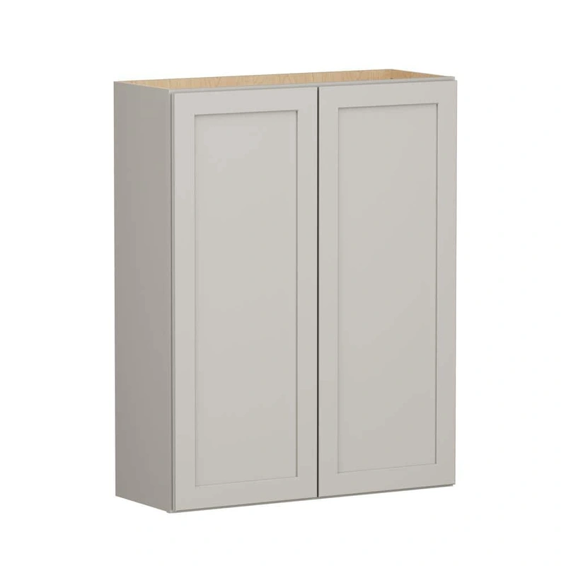 Upgrade your kitchen with the Simply Woodmark PRO Shaker Full Overlay Wall Kitchen Cabinet. Its robust all-plywood construction paired with a sleek stone gray finish offers unmatched durability and modern style. Perfect for quick installations, it comes fully assembled with premium cushion close hinges and a lifetime warranty.