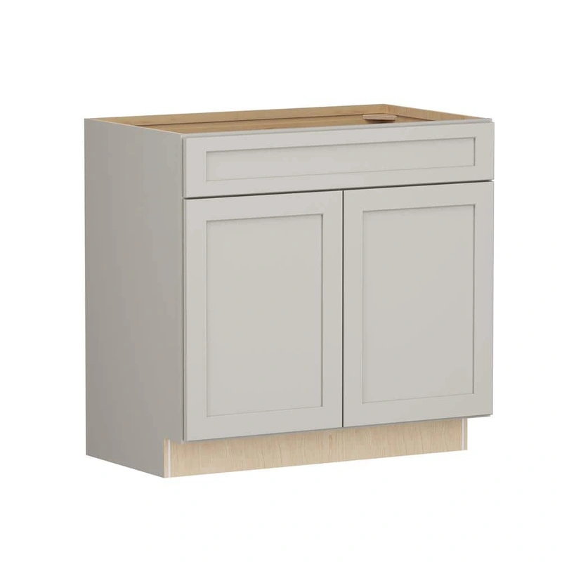Shaker Full Overlay Vanity Sink Base Cabinet - Stone Gray Upgrade your bathroom with the premium Shaker Full Overlay Vanity Sink Base Cabinet in Stone Gray by SIMPLY WOODMARK PRO. Crafted from durable plywood, this cabinet offers stylish functionality and