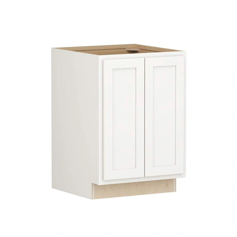 Linen White Plywood Base Kitchen Cabinet The SIMPLY WOODMARK PRO 24-inch Plywood Assembled Full Height Base Kitchen Cabinet in Linen White combines durability and elegance with its all-plywood construction and premium painted finish. The cabinet's CushionC
