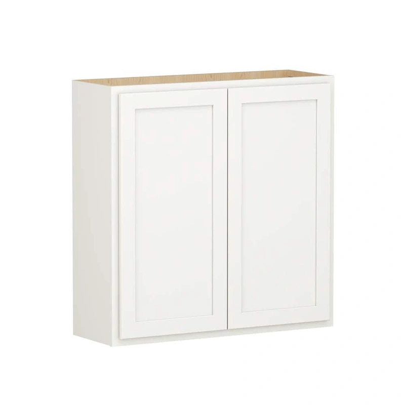 Shaker Partial Overlay Wall Kitchen Cabinet - Linen White Enhance your kitchen with the Shaker Partial Overlay Wall Kitchen Cabinet from SIMPLY WOODMARK PRO. Crafted with premium all-plywood construction, this cabinet offers durability and stability in a c