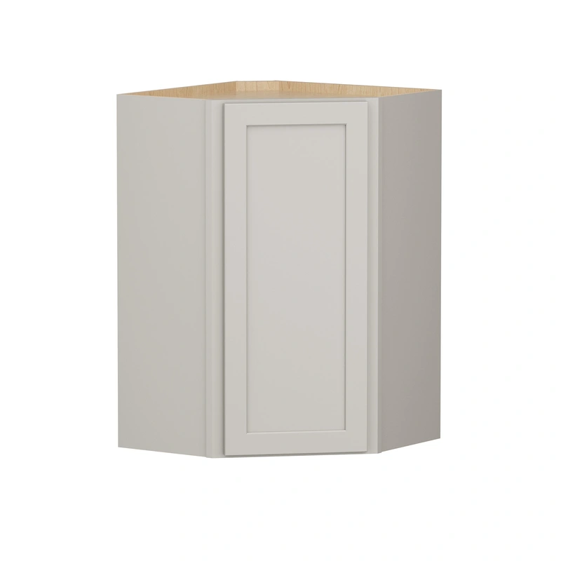 The Shenandoah PRO Express Breckenridge 24-inch Corner Wall Cabinet offers exceptional durability and style with its plywood construction and recessed panel Shaker design. Finished in a sophisticated Stone full overlay, this fully assembled cabinet seamlessly enhances any kitchen or living space, combining timeless elegance with modern functionality.