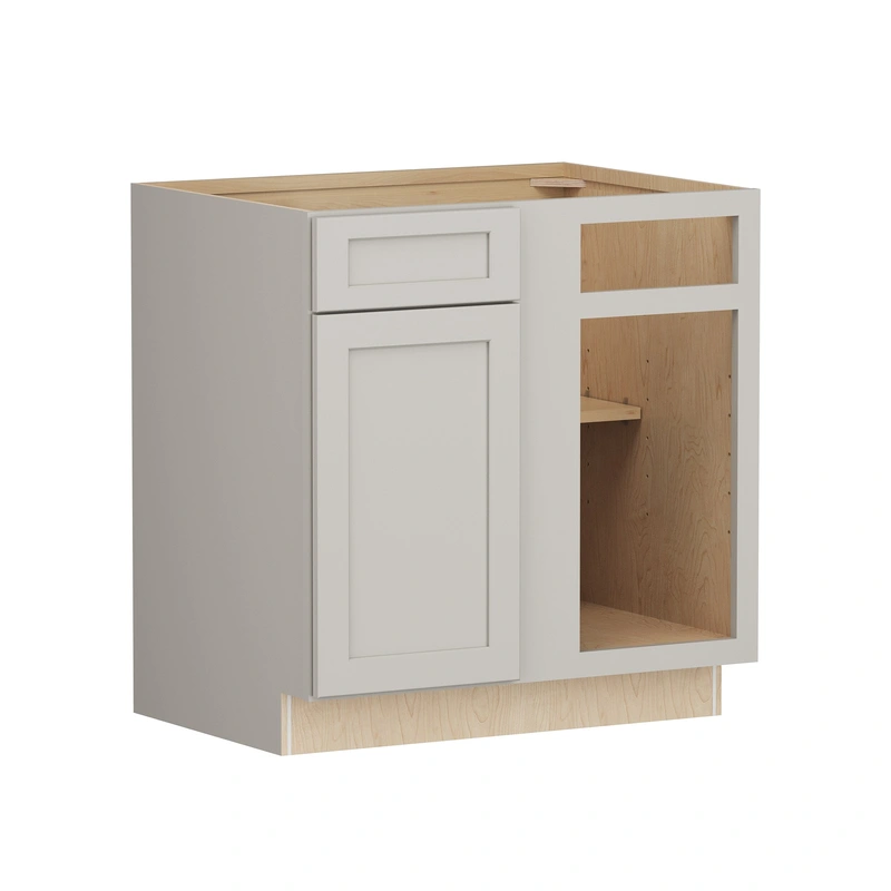 Shenandoah PRO Express Shaker Corner Base Cabinet Elevate your kitchen design with the Shenandoah PRO Express Breckenridge Corner Base Cabinet. This fully assembled cabinet boasts a sophisticated stone finish, durable plywood construction, and a sleek shak