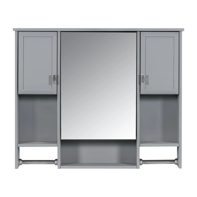 Siavonce Grey Mirrored Cabinet, Soft Close Transform your bathroom with the Siavonce 35-in x 29-in Surface Mount Grey Mirrored Soft Close Medicine Cabinet. This stylish and functional cabinet features a mirrored front for added convenience and a sleek grey