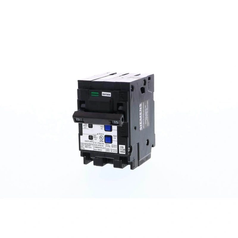 Siemens 15 Amp 2-Pole AFCI Circuit Breaker The Siemens 15 Amp 2-Pole Combination Type AFCI Plug-On Neutral Circuit Breaker ensures your electrical systems are safe and reliable by detecting arc faults that standard breakers miss. It features a space-saving