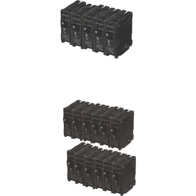 Siemens 15 & 20 Amp Circuit Breaker Bundle (36-Pack) Equip your next electrical project with Siemens comprehensive bundle of circuit breakers. This online-only pack includes 12 units of 15 Amp and 24 units of 20 Amp single pole breakers, perfect for co