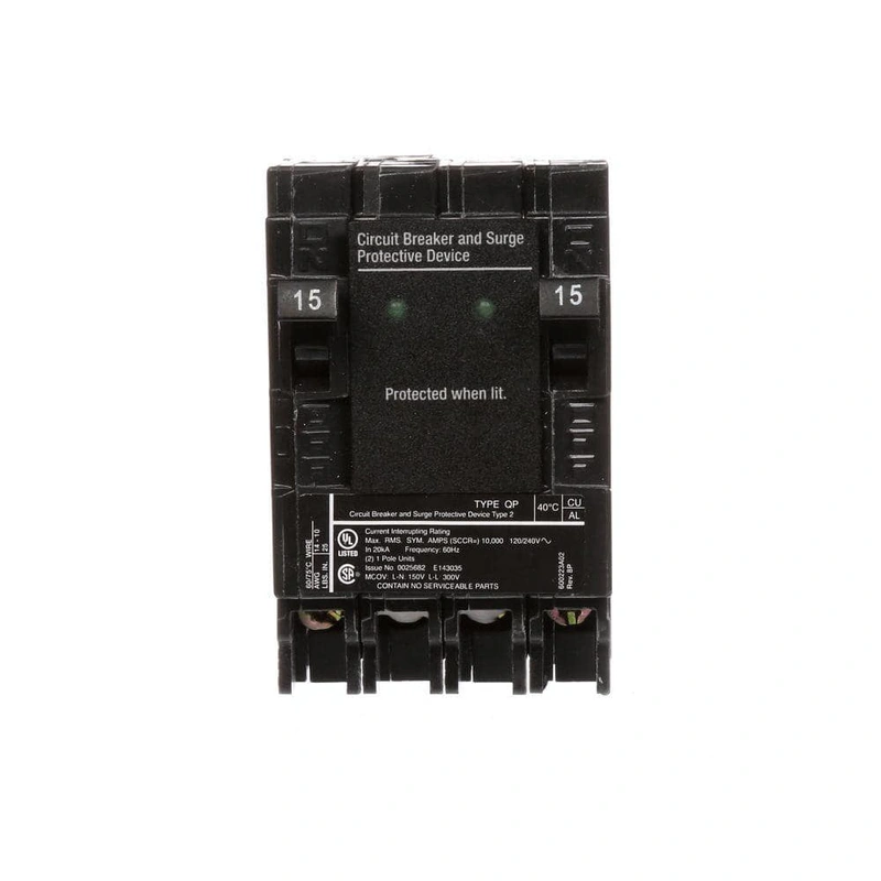 Siemens 15 Amp Single-Pole Surge Protection Circuit Breaker The Siemens 15 Amp Single-Pole Surge Protection Circuit Breaker is a robust solution for safeguarding household or facility circuits. This device seamlessly combines surge protection with circuit-