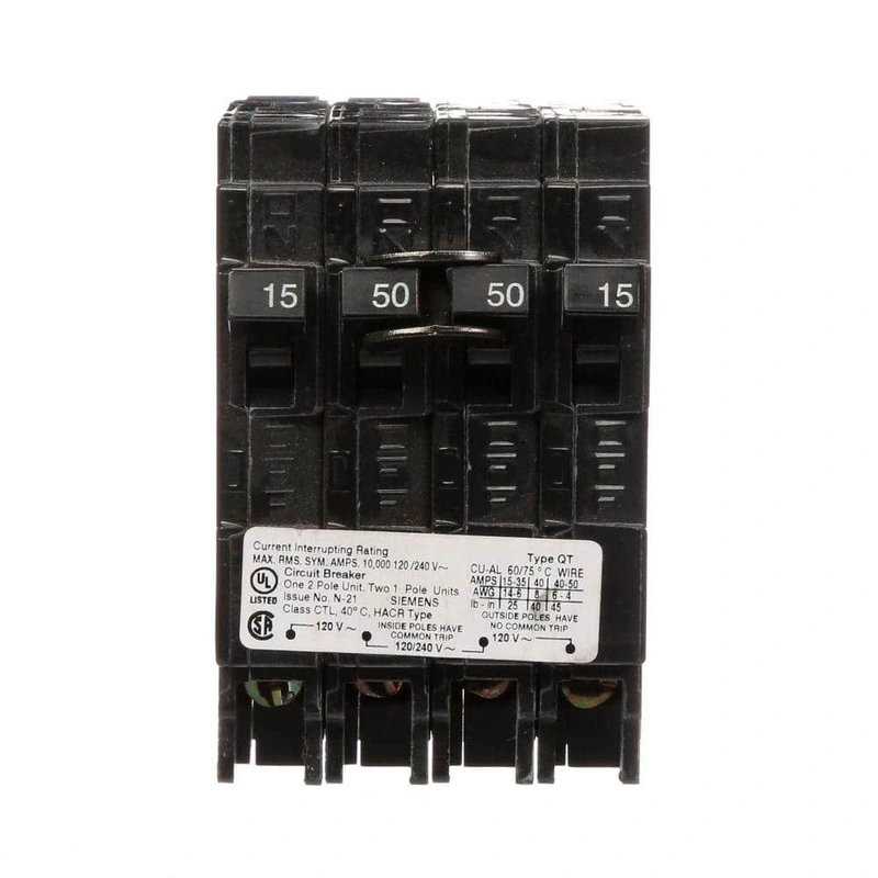 Siemens 50 Amp Triplex Circuit Breaker The Siemens 50 Amp double-pole and dual 15 Amp single-pole triplex circuit breaker is engineered to protect your home safely and efficiently. Ideal for Siemens panels that accommodate CTL-type QT breakers, this breake