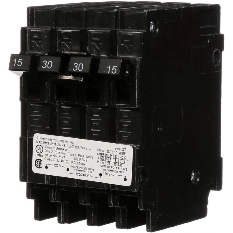 Siemens Triplex 15/30 Amp Circuit Breaker The Siemens Triplex Circuit Breaker combines space-saving design with high reliability, offering a robust solution for both residential and commercial power distribution needs. This breaker features one inner 30 Am
