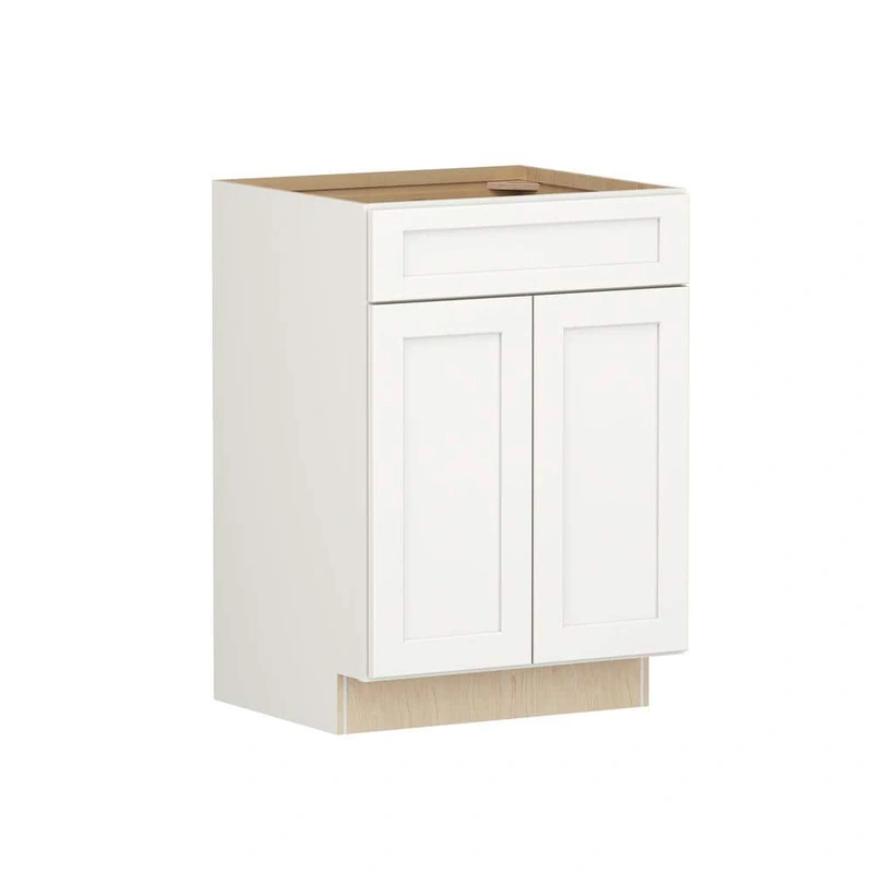 Shaker Style Linen White Vanity Sink Base The SIMPLY WOODMARK PRO Shaker Vanity Sink Base combines timeless design with practical functionality, perfect for any modern bathroom. Crafted from premium all-plywood construction, this fully assembled cabinet bo