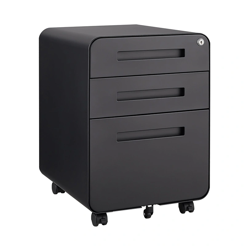 SINOFURN Black 3-Drawer File Cabinet Keep your important documents secure and organized with the SINOFURN Black 3-Drawer File Cabinet. Featuring a sleek design and durable powder-coated steel construction, this cabinet offers ample storage while easily sli