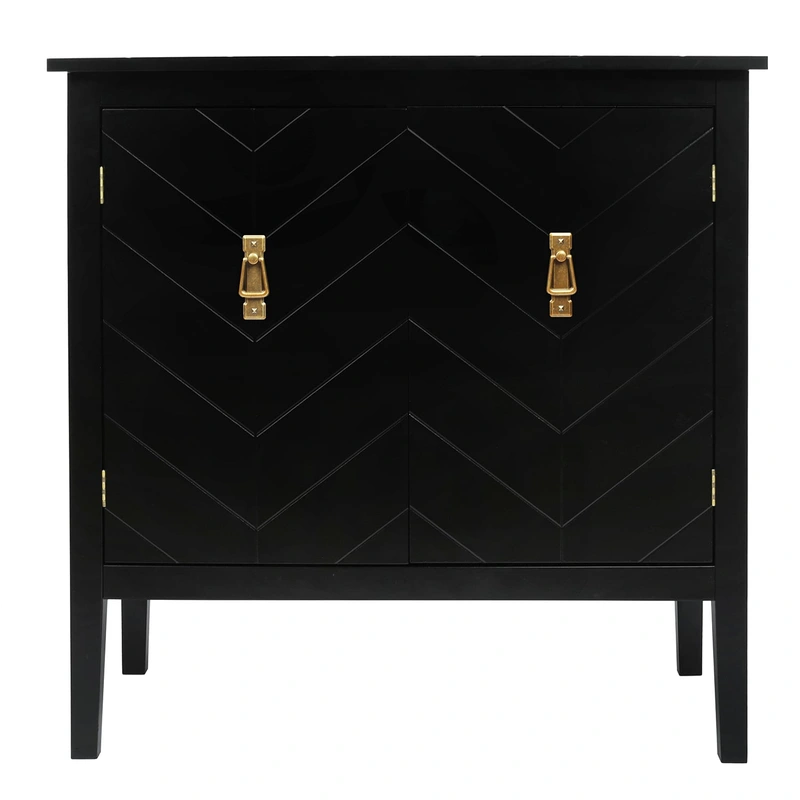 Vintage Black Wood Storage Cabinet Elevate your space with the SINOFURN Vintage Black Wood Storage Cabinet, featuring a charming blend of high-quality MDF construction and antique brass accents. This meticulously designed cabinet offers tailored storage so