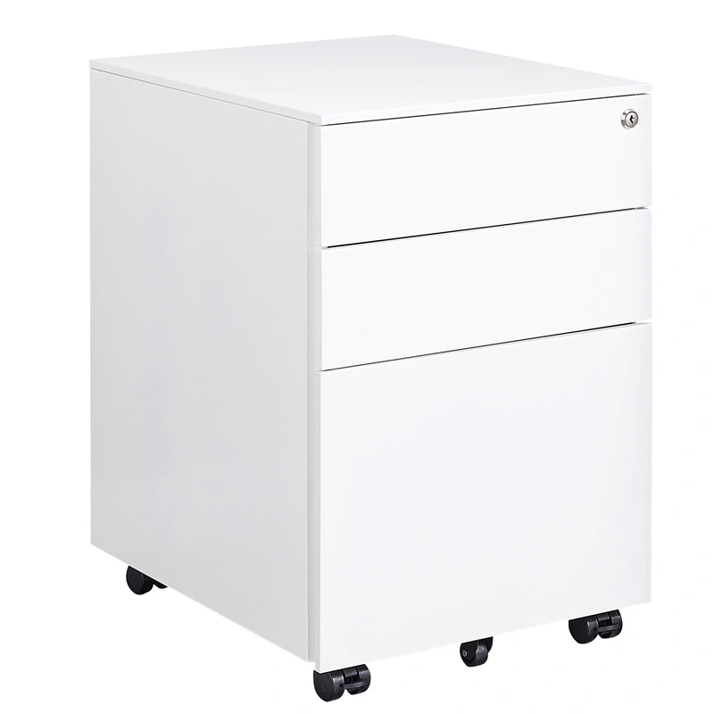 Mobile White 3-Drawer File Cabinet Streamline your workspace with the SINOFURN White 3-Drawer File Cabinet, designed for both aesthetics and practicality. Its sleek, modern design complements any home office or study while offering easy maneuverability wit