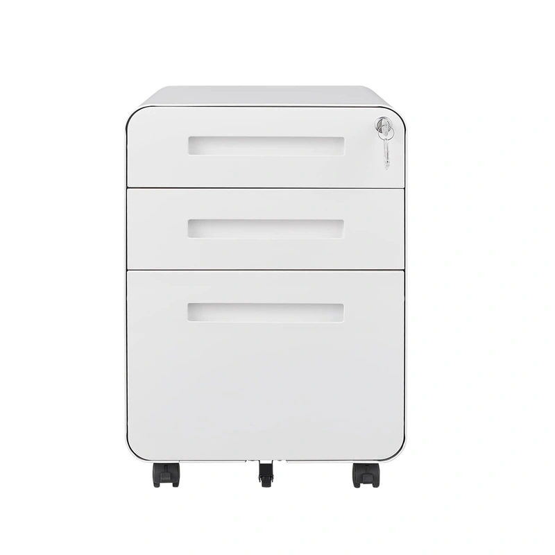 White 3-Drawer File Cabinet The SINOFURN 3-Drawer File Cabinet combines sleek design with practical functionality, perfect for home offices or professional environments. Featuring sturdy, powder-coated steel construction and a compact design, this cabinet