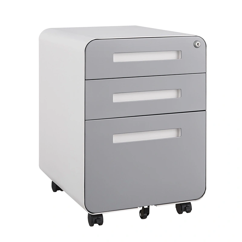 SINOFURN White+Gray 3-Drawer File Cabinet The SINOFURN White+Gray 3-Drawer File Cabinet is a compact storage solution designed for both style and efficiency. Its sturdy powder-coated steel construction ensures it can double as a printer stand, supporting u