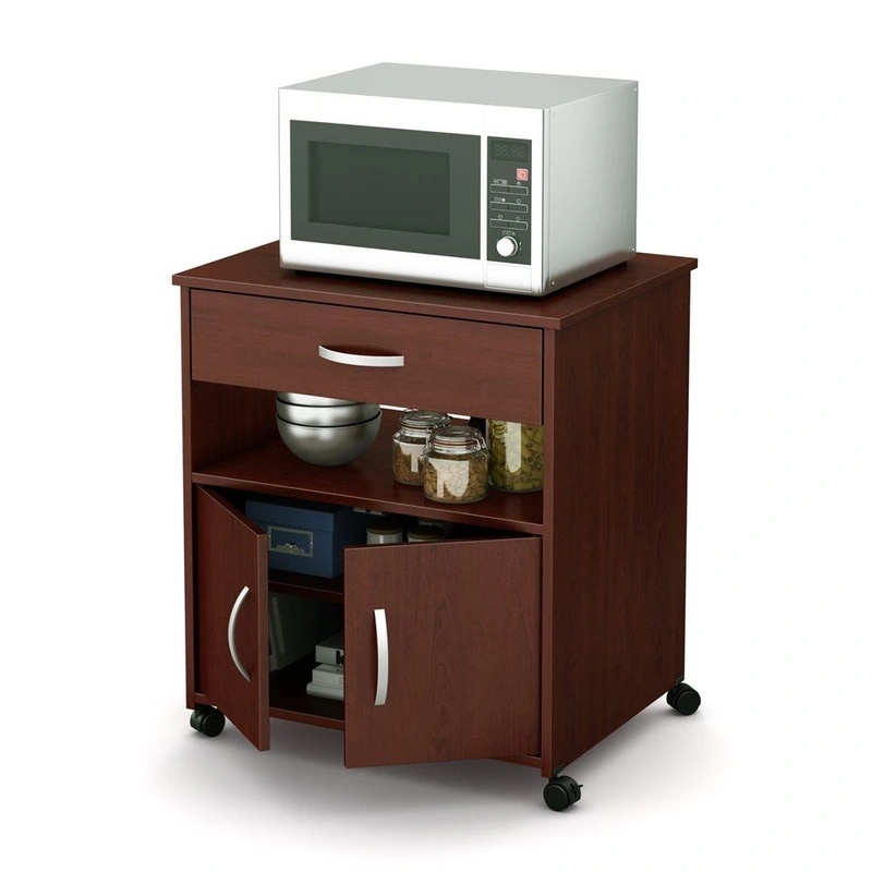 Mobile Brown Microwave Cart with Wood Laminate Top The Mobile Brown Microwave Cart offers a versatile, space-saving solution for your kitchen organization needs. Crafted with a sturdy composite base and a wood laminate top, this cart elegantly combines fun