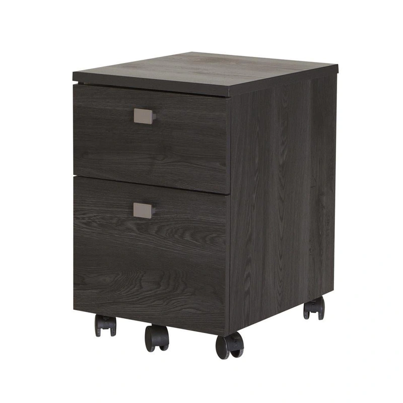 Interface Grey Oak 2-Drawer File Cabinet with Casters Elevate your home office with the South Shore Furniture Interface Grey Oak 2-Drawer File Cabinet. Designed for mobility and style, this cabinet combines contemporary aesthetics with practical functional