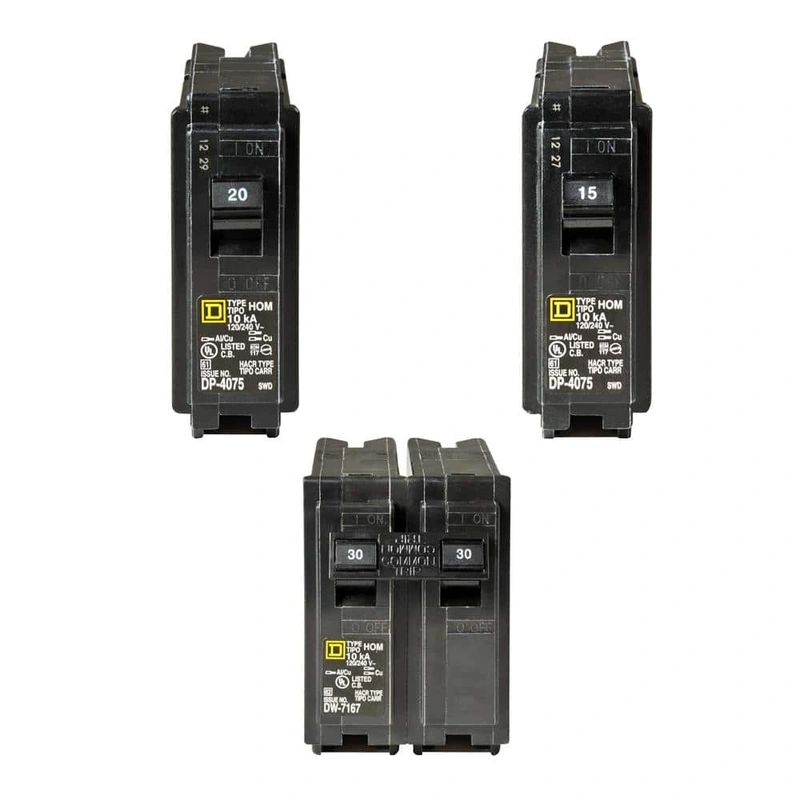 Square D Homeline Circuit Breaker Pack Ensure reliable protection for your residential or light commercial electric systems with the Square D Homeline Circuit Breaker 3-pack. This set includes single-pole 15 Amp and 20 Amp breakers, plus a 30 Amp 2-pole br