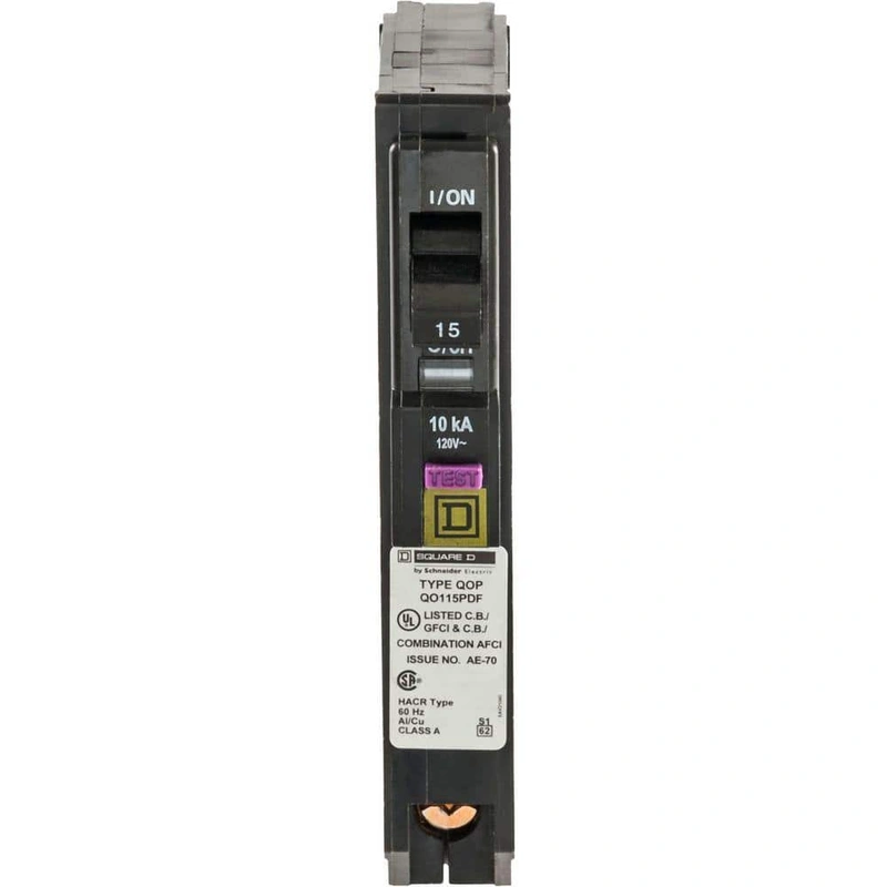 15 Amp Single-Pole Dual Function Circuit Breaker 9-Pack Ensure safety and compliance with the Square D QO 15 Amp Single-Pole Dual Function Circuit Breaker. This innovative breaker combines the crucial protection of both Arc Fault (CAFCI) and Ground Fault (