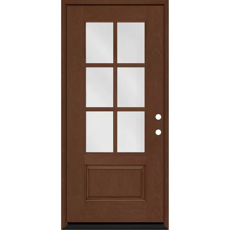 • Elegant Design: 3/4-6-lite clear glass layout with chestnut stain finish.