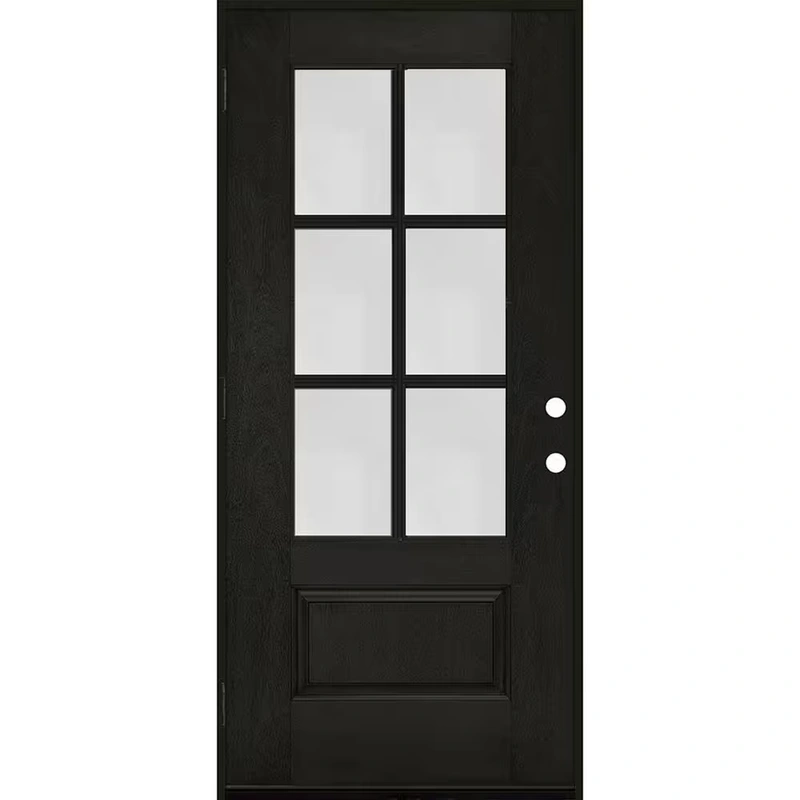 Steves & Sons Regency 36 in. x 80 in. 3/4-6 Lite Clear Glass RHOS Onyx Stain Mahogany Fiberglass Prehung Front DoorProduct Description:Elevate your home's entrance with the Steves & Sons Regency Fiberglass Prehung Front Door. This elegant 36" x 80"