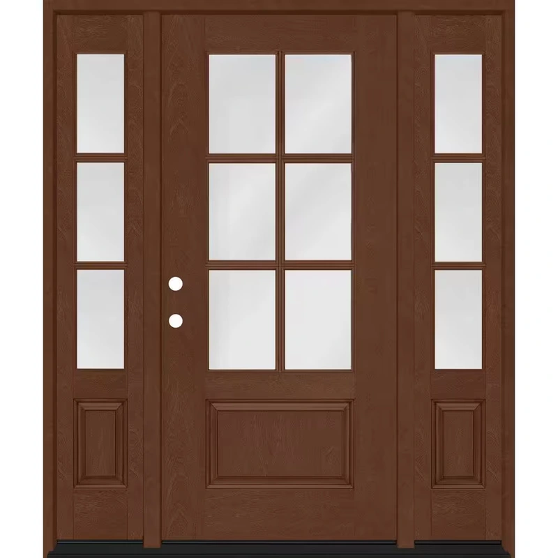 Steves & Sons Regency 64 in. x 80 in. 3/4-6 Lite Clear Glass RH Chestnut Stain Mahogany Fiberglass Prehung Front Door with Double 12 in. SidelitesProduct DescriptionElevate your home's entrance with the Steves & Sons Regency Prehung Front Door, a m