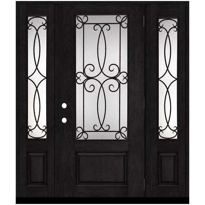 Product DescriptionElevate your home's entrance with the Steves & Sons Regency 64 in. x 80 in. 3/4 Lite Georgian Decorative Glass LHOS Onyx Mahogany Fiberglass Prehung Front Door. This refined and durable entry solution merges style with practicality,