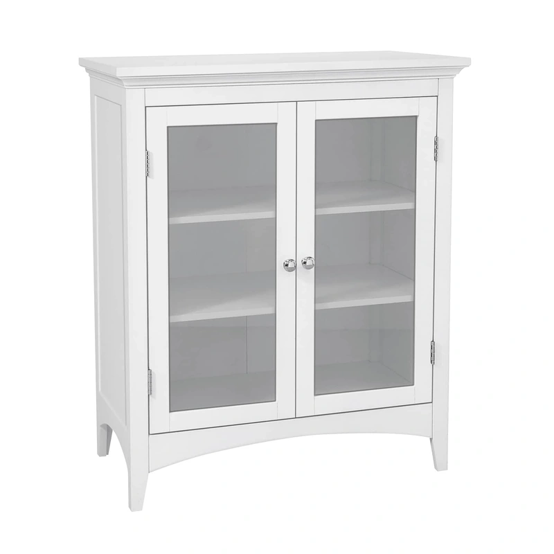 The Teamson Home Madison Linen Cabinet is a stylish storage solution crafted for elegance and functionality. With its classic white finish and transparent glass doors, this freestanding cabinet complements any dcor while providing ample storage with adjustable shelves. Perfect for organizing linens and essentials in any room of your home.