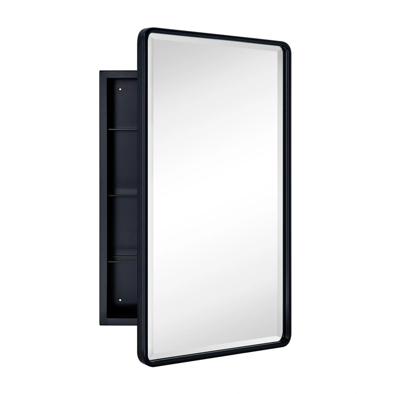 Matt Black Reversible Mirrored Medicine Cabinet The TEHOME 16.5-in x 27.5-in Matt Black Mirrored Medicine Cabinet brings sleek, modern style with its matte black finish and reversible magnetic door. Its adjustable tempered glass shelves make organization e