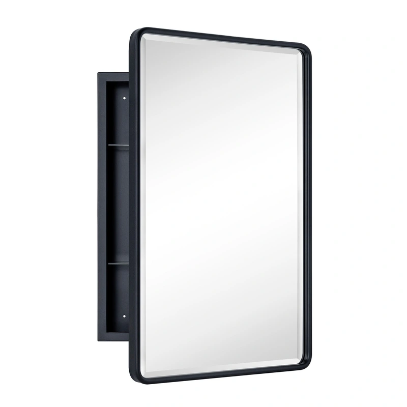Matt Black Reversible Mirrored Medicine Cabinet The TEHOME 16-in x 24-in Surface Mount Medicine Cabinet combines functionality and sleek design in a matt black finish. Its durable metal construction and tempered glass shelves ensure longevity and versatile