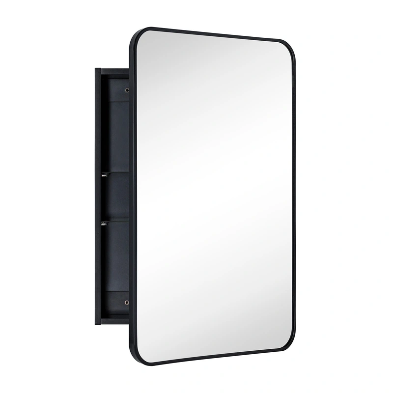 Matt Black LED Medicine Cabinet Transform your bathroom with the sleek TEHOME 20-in x 30-in LED Surface/Recessed Mount Matt Black Mirrored Medicine Cabinet. Featuring a durable metal frame and soft-close door, it offers versatility with reversible mounting