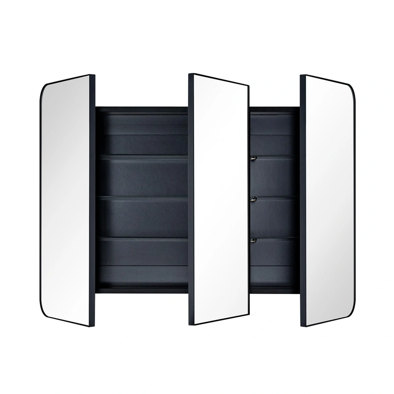TEHOME 3-Door Matt Black Soft Close Medicine Cabinet The TEHOME Matt Black Mirrored Medicine Cabinet is a sophisticated solution for your bathroom storage needs, combining modern design with unparalleled functionality. Perfectly sized at 26" x 36", it offe